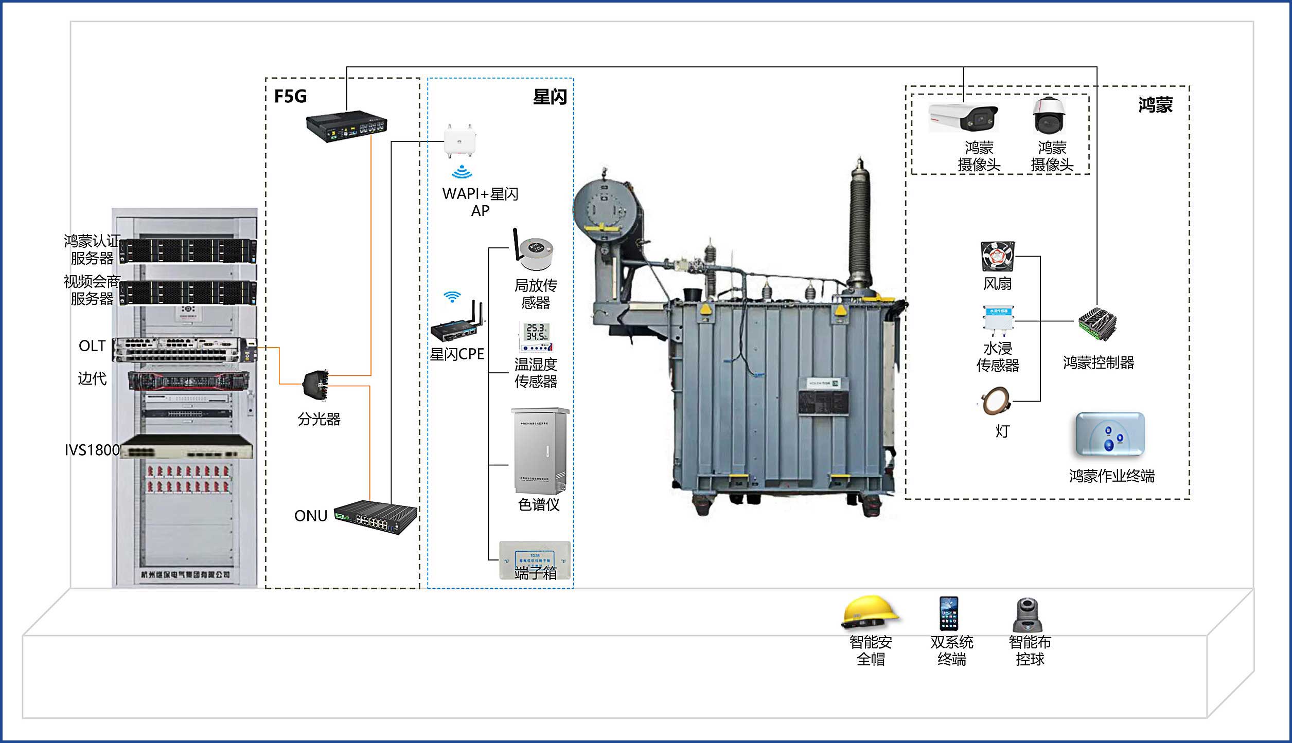 智慧變電站設備狀態多參量在線監測系統,融合了前沿的科技與創新理念,憑借先進的狀態監測傳感器、創新性的WAPI通訊和星閃技術,以及強大的國產自主可控后臺電鴻操作系統,為變電站的高效、安全運行打造了全方位智能在線監測解決方案,助力電力行業邁向智能化新時代。