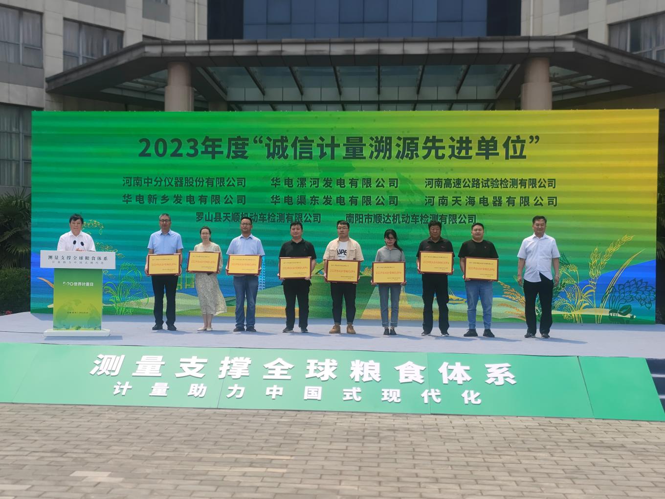 2023年5月20日是第24個“世界計量日”,由河南省計量測試科學研究院組織的“2023年度誠信計量溯源先進單位”頒獎活動在計量測試科學研究院平原新區實驗基地隆重舉行。我公司獲評“2023年度河南省計量溯源先進單位”榮譽稱號。